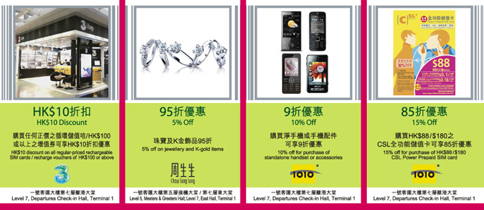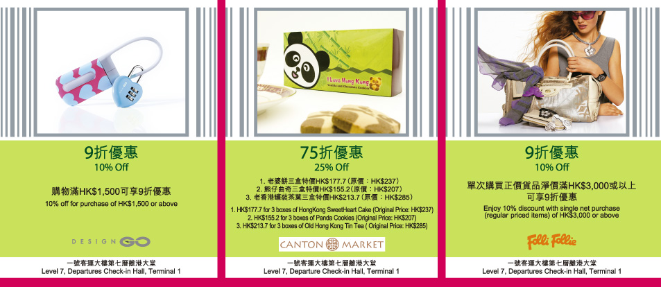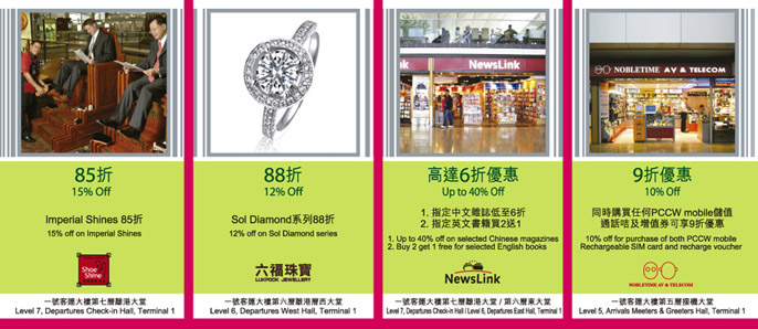 註: 以上優惠內容只作參考,請於香港國際機場索取優惠券正本以享優惠。