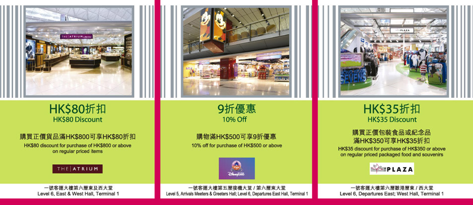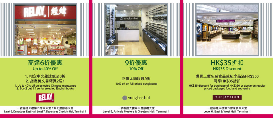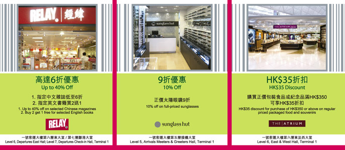 註: 以上優惠內容只作參考,請於香港國際機場索取優惠券正本以享優惠。